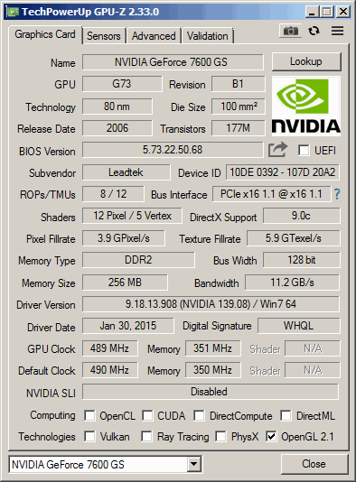 - Family: GeForce 7