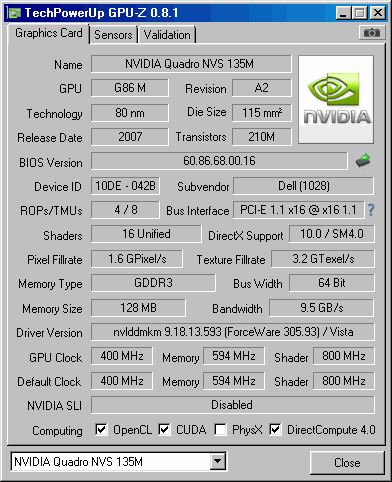 NVIDIA Quadro NVS 135M