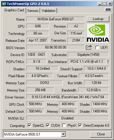 Card have overclocked core to 500MHz and shaders running at 1404MHz.