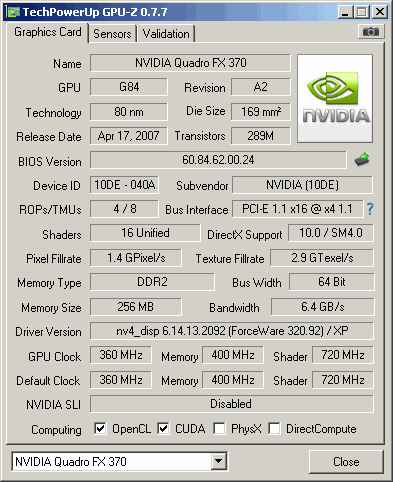 Quadro FX 370 GPUZ