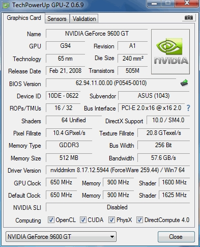 Asus EN9600GT/HTD/512M/A